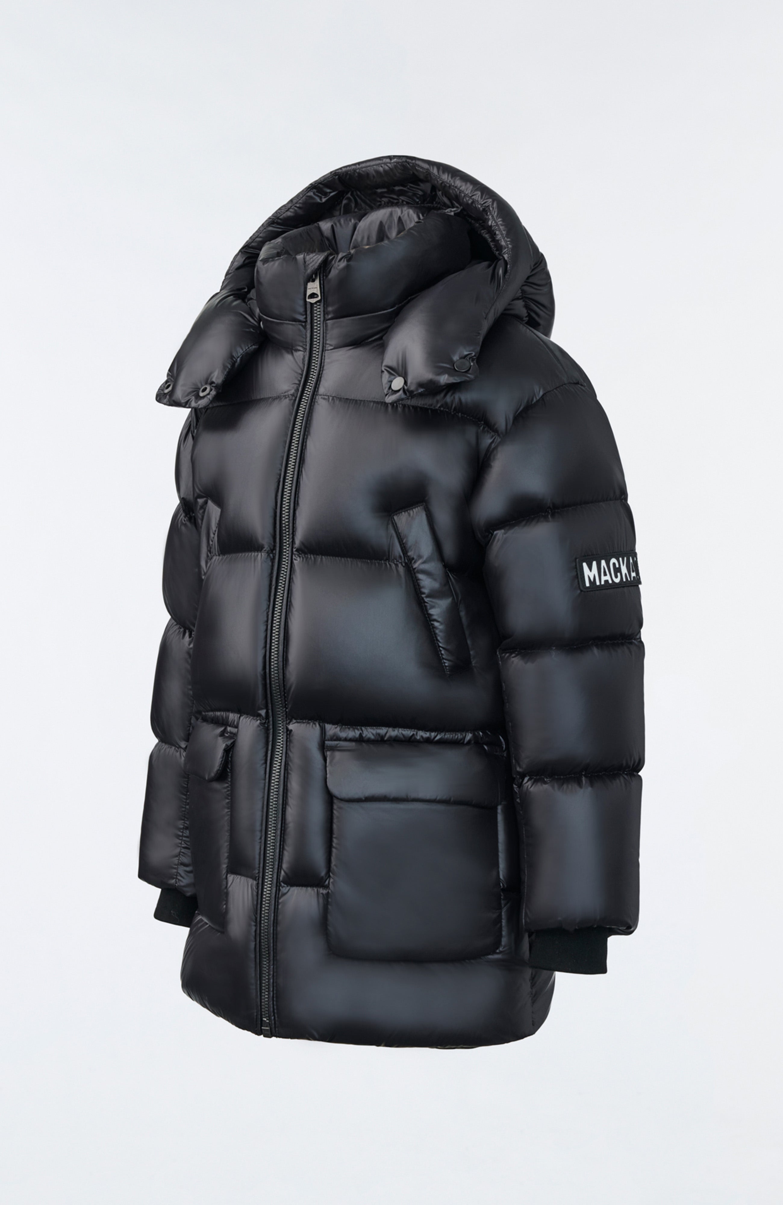 • Mid-length light nano down puffer with a high-shine, water-repellent nylon shell