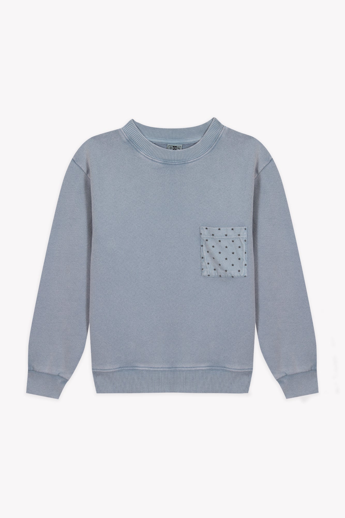 Blue sweater decorative starry pocket for a playful detail