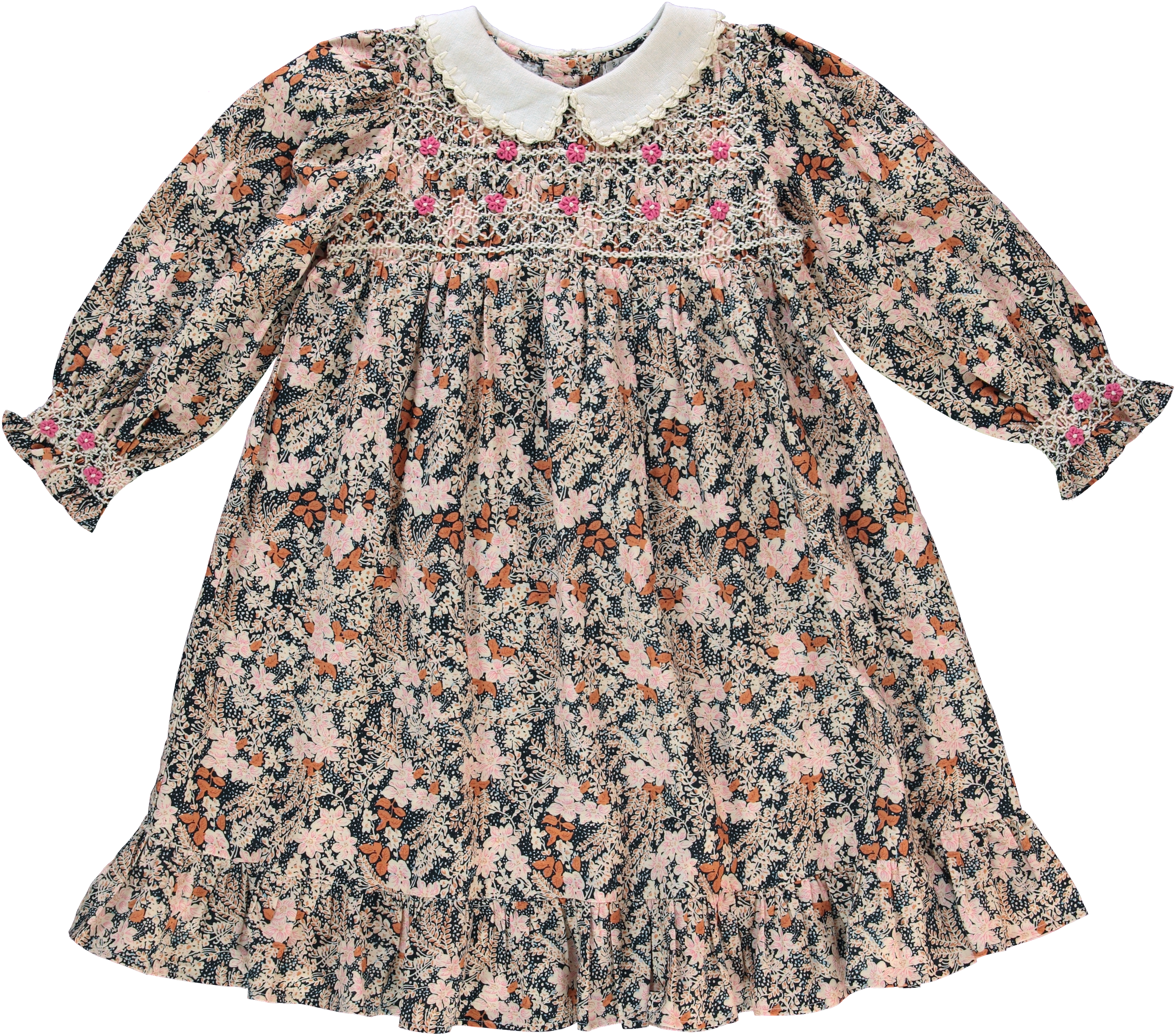 Hand-smocked chest with embroidered pink flowers and delicate cross-stitching