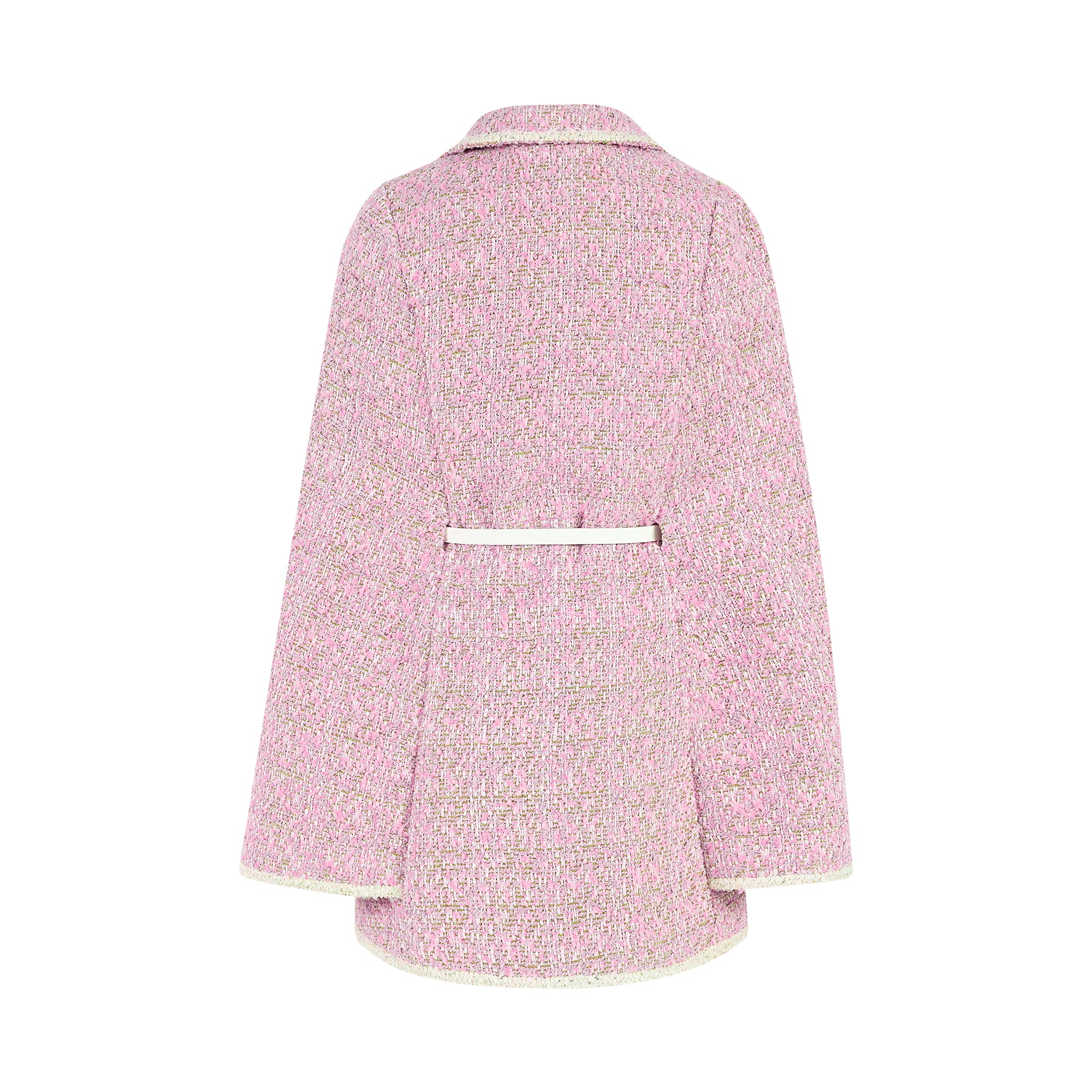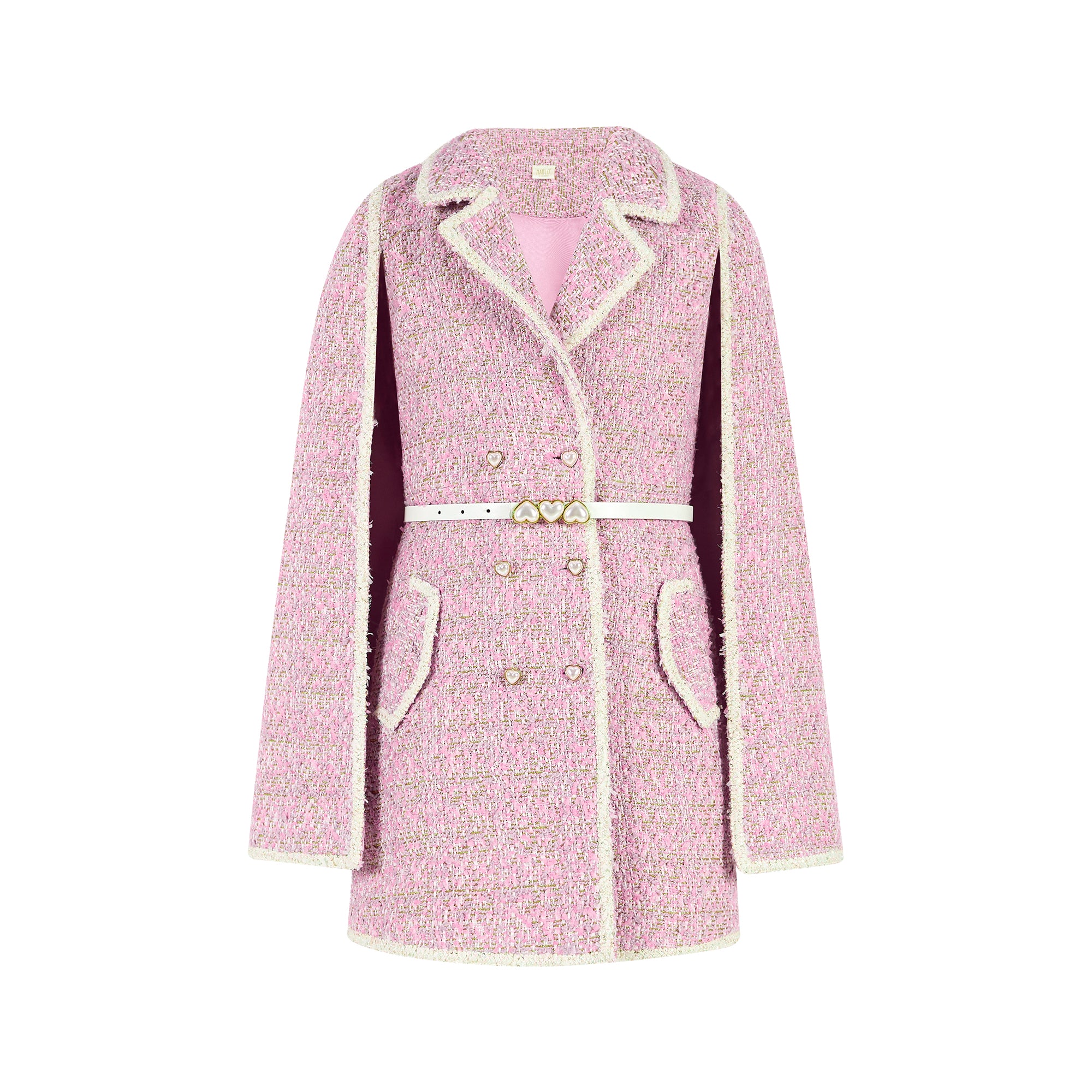 Make a sparkling entrance in this metallic tweed mini dress, featuring a dramatic cape-style overlay and shimmering texture—made for the spotlight.