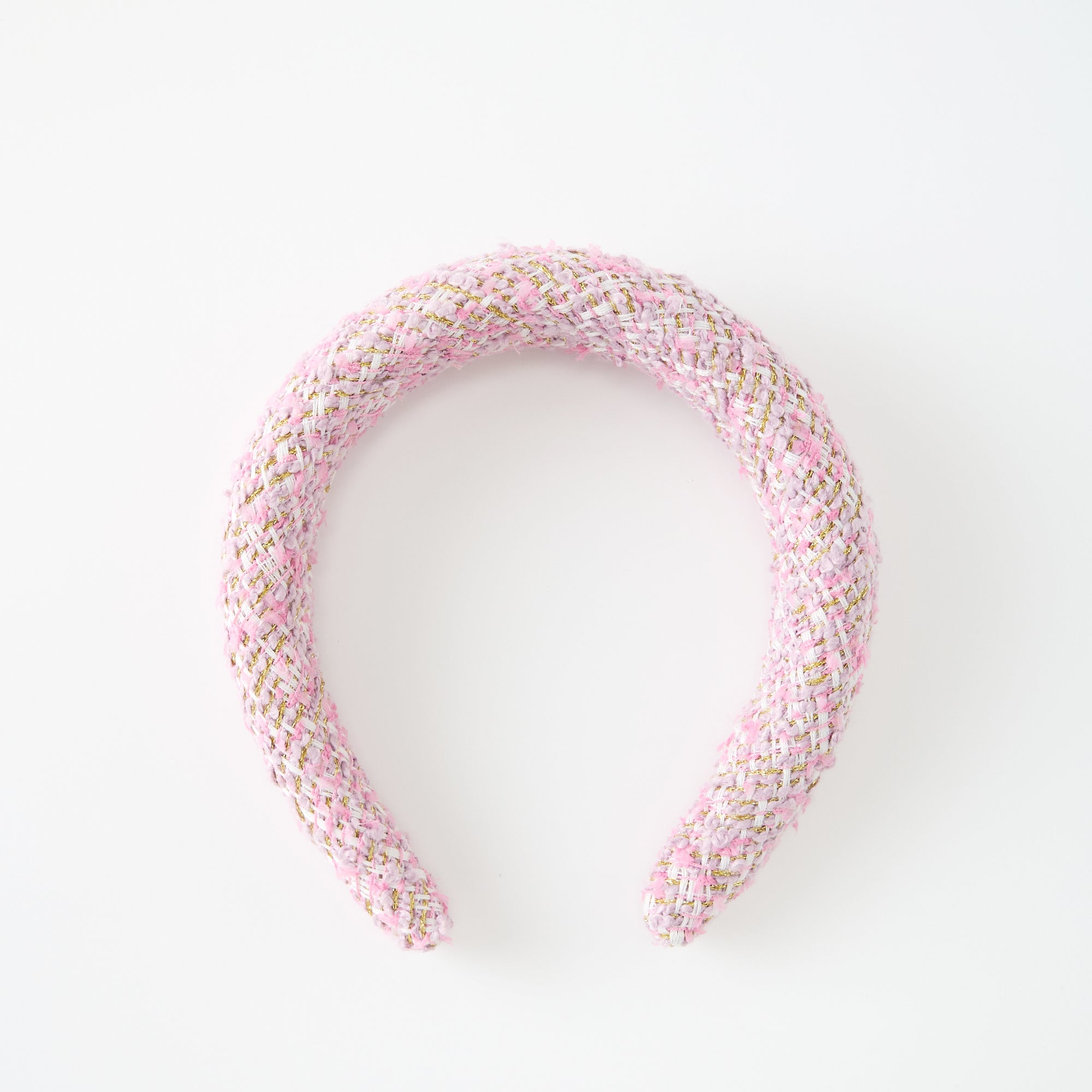 An elegant finishing touch, this metallic pink tweed headband adds just the right amount of sparkle—perfect for pairing with the Glimmer Tweed Cape Dress or wearing solo for a chic accent.