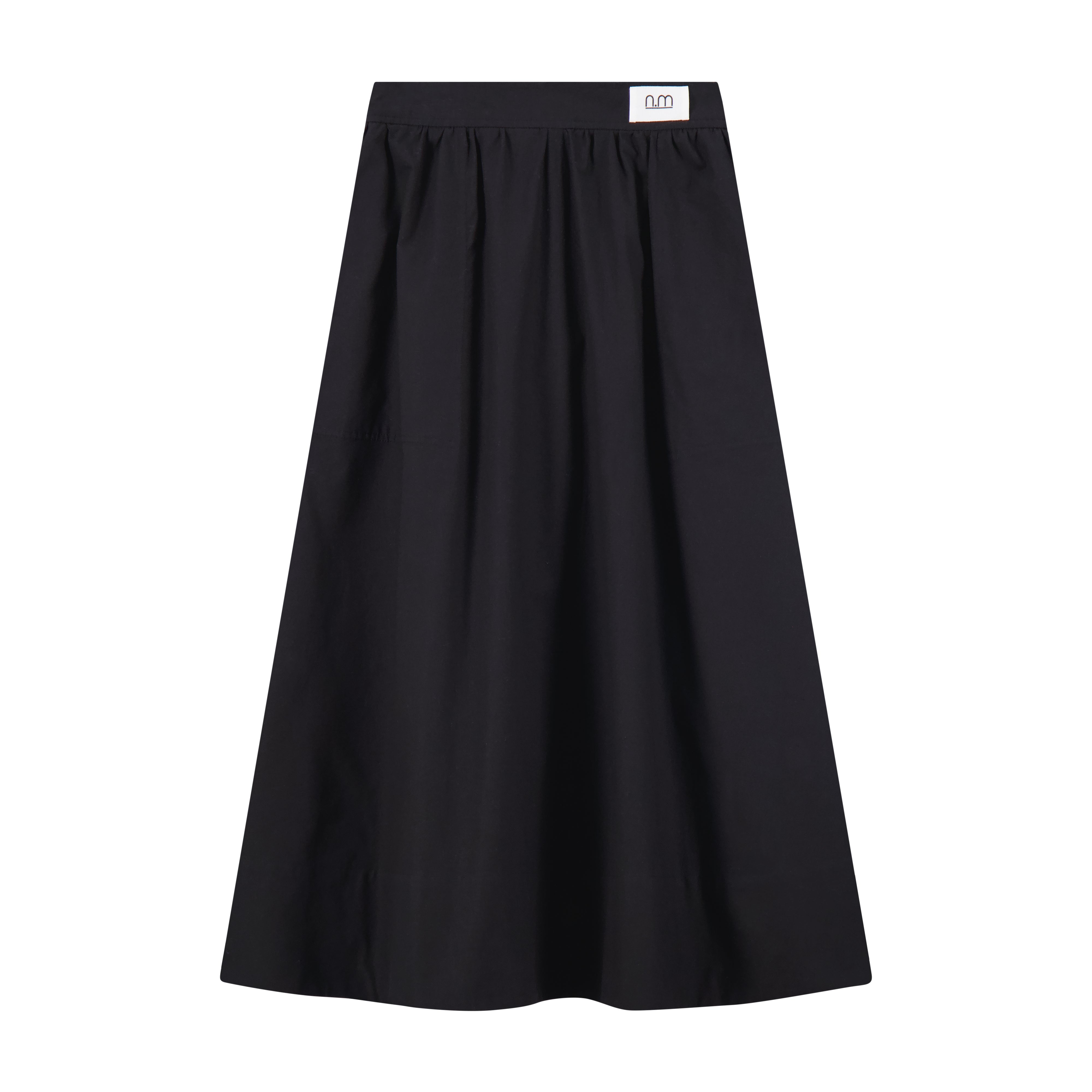 Polished Cotton Gathered Skirt- Black