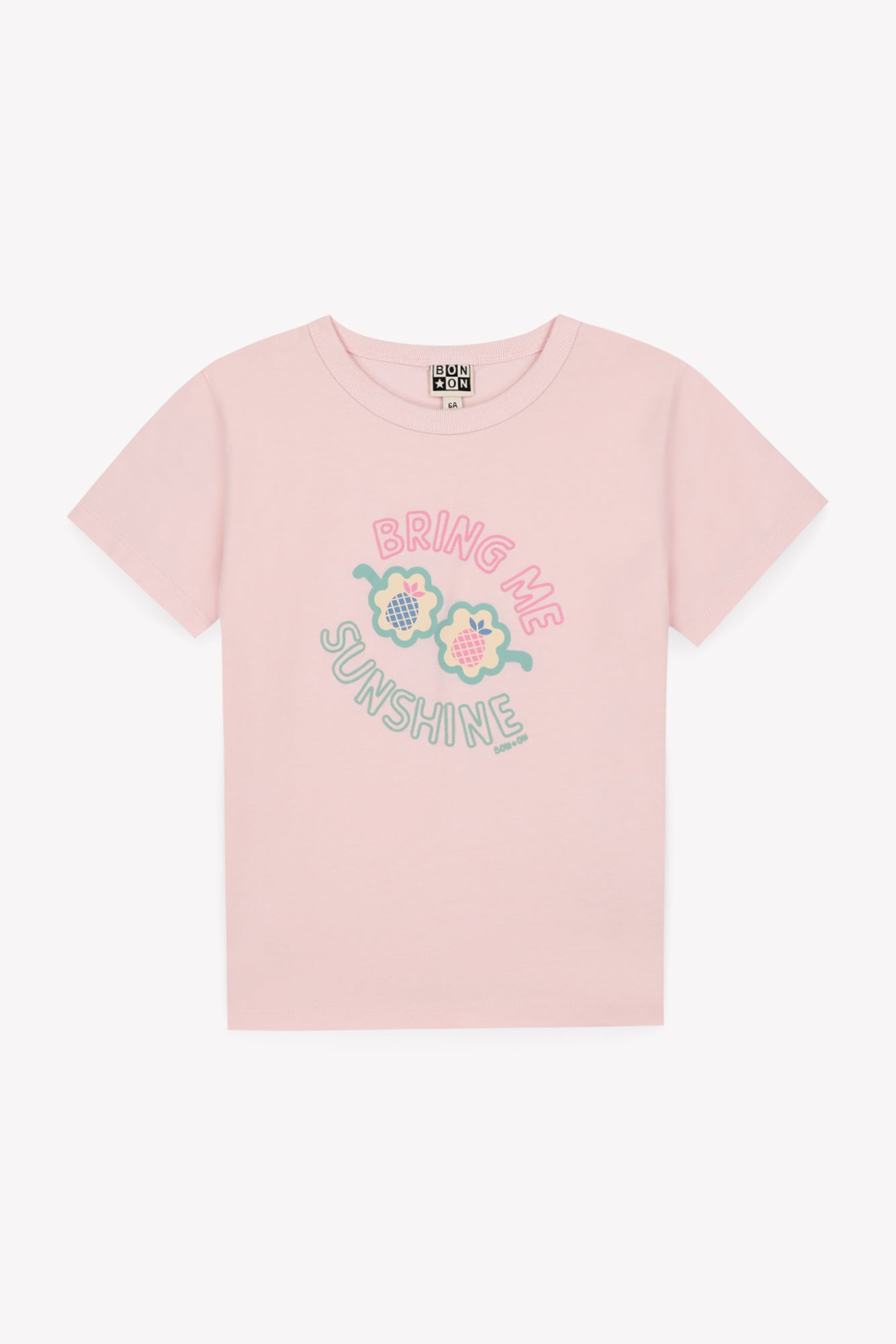 • Soft pink T-shirt with playful sunglasses illustration