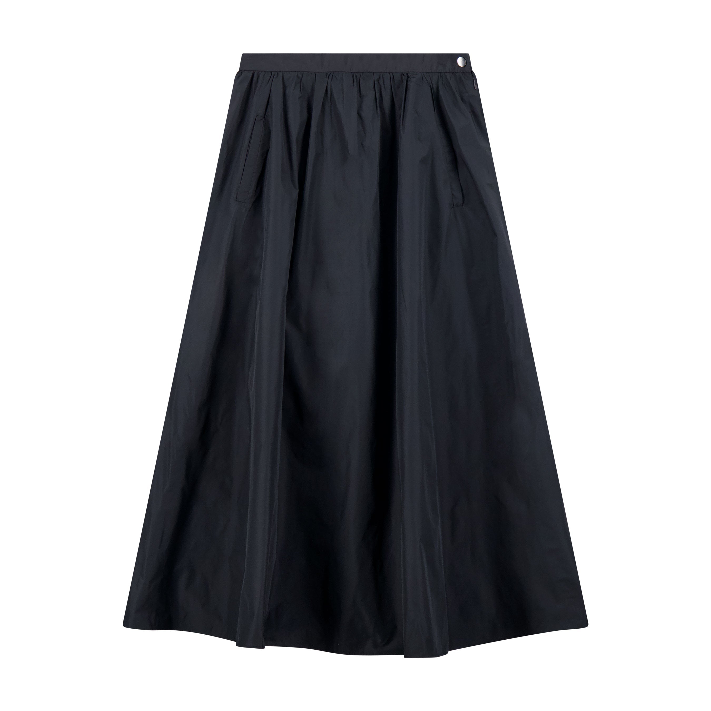 • Black taffeta gathered skirt designed for a refined, elegant silhouette